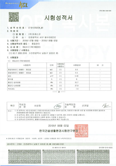 | RL FR (650) | 방염 MDF + LPM | 합격 | 가구 |